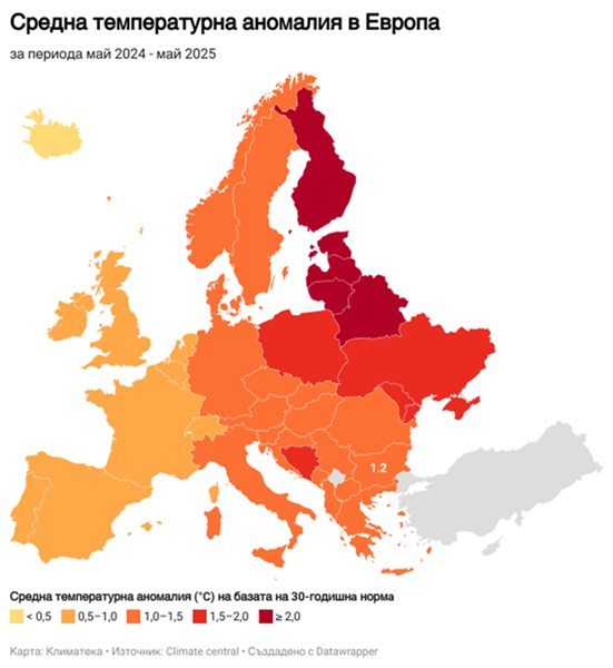 В България положението също е обезпокоително – през последната година всеки пети ден (77 дни) е бил с необичайно висока температура, а всеки девети ден (33 дни) е бил с екстремни температури само вследствие на климатичните промени.