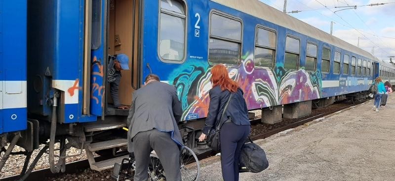 Днес на 11 май 2023г. станах свидетел на БВ 2610 от Варна за София. На ЖП гарата в Търговище с внимание и любезност началник влака и кондукторката помогнаха на пътник без крака да слезе от вагона, помогнаха за сака на човека, както и количката! Казаха си благодаря и всеки продължи по – своя път! Това информира Председателят на УС на НССБ Слави Михайлов, цитиран от сайта Плевен За Плевен.