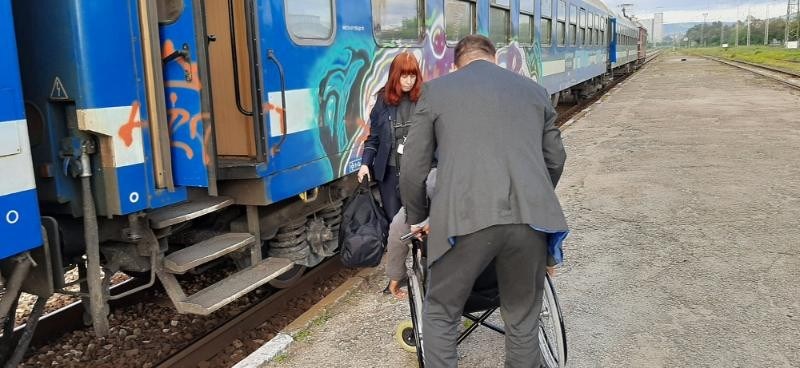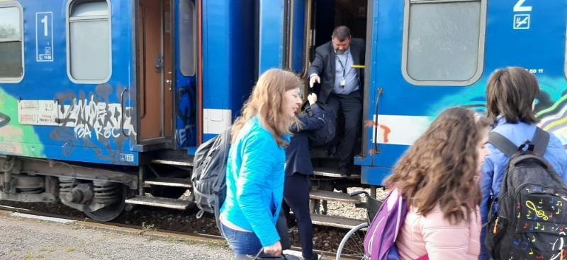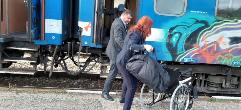 Началник влака и кондукторката помогнаха на човек в неравностойно положение да слезе от влака