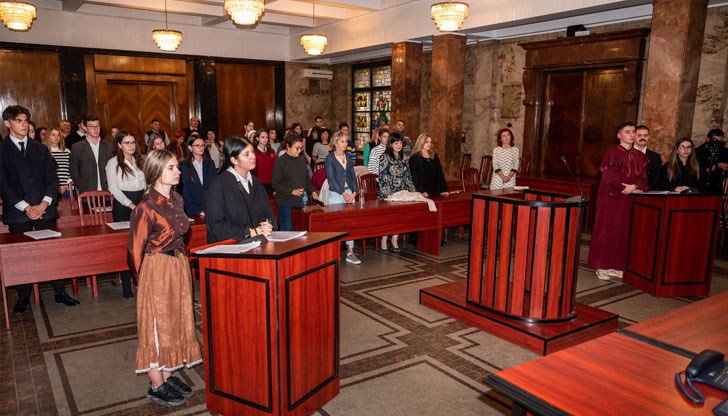 Ученици от 12 клас в АЕГ „ Гео Милев“ разиграха симулативен процес по романа на Димитър Талев „Железният светилник“ в Мраморната зала на Окръжен съд – Русе.