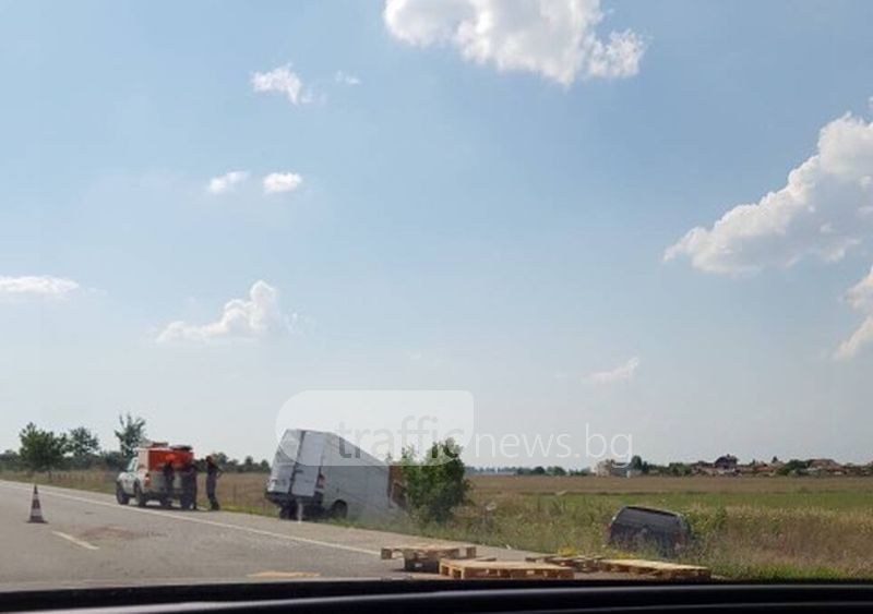 Микробус се е ударил в разделителната мантинела на 131-ия км на магистрала "Тракия" в посока София около 16 часа днес, завъртял се е от удара и е излязъл вдясно извън пътя.