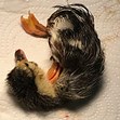 Новата майка на пернатото използвала салфетка, напоена с антибиотик, с която натърквала пъпната връв и коремчето на птичето два пъти дневно. За голяма изненада патенцето оживяло.