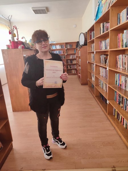 На скромна церемония в библиотеката на читалището секретарят на читалищното настоятелство Петя Герасимова връчи на Цветанка грамота и книга, с която да започне новите си литературни приключения през 2025 година.