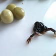За да се види по-ясно на какво се е натъкнала, младата жена е снимала отделно земноводното на фона на няколко зърна от зеленчука в чиния. Снимките качила веднага във Фейсбук.