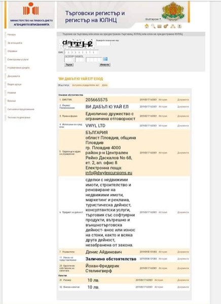 Оказа се, че Йохан наистина има фирма за недвижими имоти и туризъм, регистрирана в Пловдив. Показва го справка в Търговския регистър.