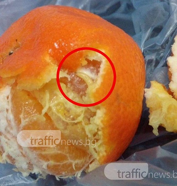 За това ни информира лично потърпевшата, като ни изпрати снимки на „екстрата”, изпълзяла от мандарините, закупени от квартален магазин в Пловдив, предаде Traffic News. Знем, че в мандарините, както и в останалите цитрусови плодове, не може да има нитрати – те не се съвместяват с лимонената киселина. Затова пък червеи – както е видно от снимките, може!