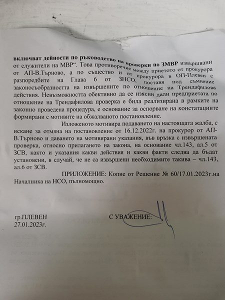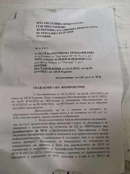Естествено чрез адвокат обжалваме постановлението от Апелативна прокуратура Велико Търново пред Върховна касационна прокуратура София .