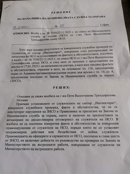 Но се усъмних,че проверката идва от НСО и написах жалба до началника на службата Емил Тонев.