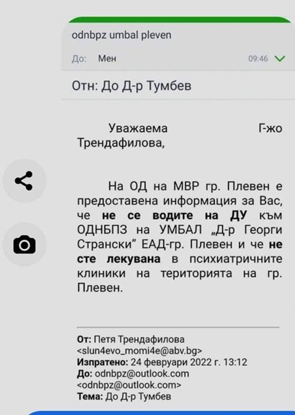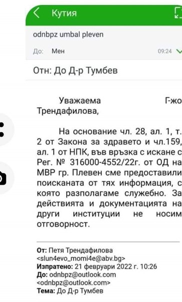 Всичко започна с изпратено до мен писмо получено на 14 февруари 2022г и подпечатано от завеждащ психиатрична д-р Тумбев,че ще бъде предоставена здравна информация за мен и ми бяха цитирани членове .