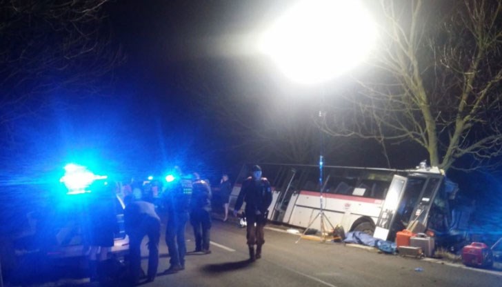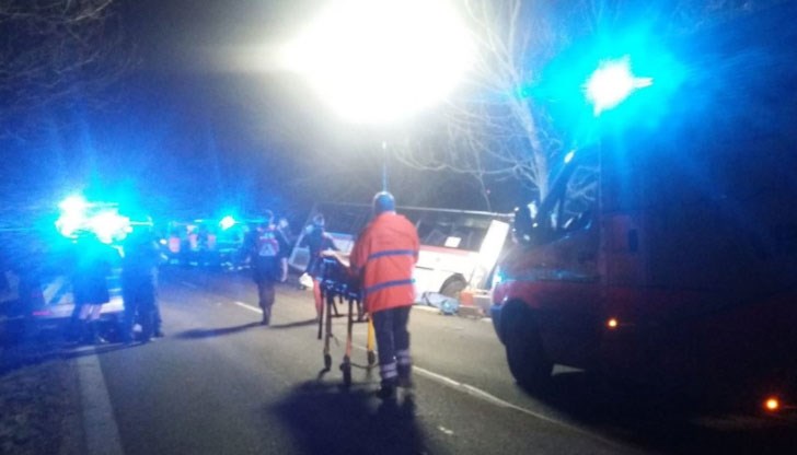 Няколко от ранените пътници на автобуса все още се намират заклещени в салона за пътници. След като излязъл от пътя, автобусът се врязал в дърво.