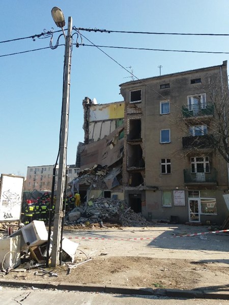 Сградата се е срутила в 7:50 ч. местно време (6:50 ч. по Гринуич). Тя е била с 18 апартамента, от които са се срутили 4, добави Бартковяк, цитиран от ТАСС. Той предупреди, че е възможно да се срути и предната част на сградата.