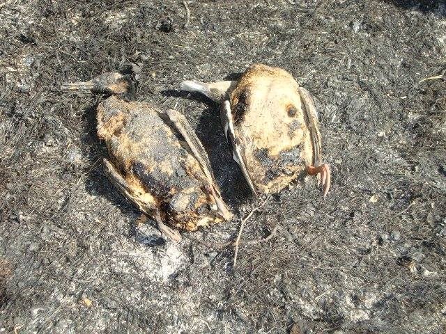 Животни, хванати в капана на огъня, изгарят живи и загиват в страшни мъки при много от пожарите в стърнища и сухи треви, алармират ловци.
