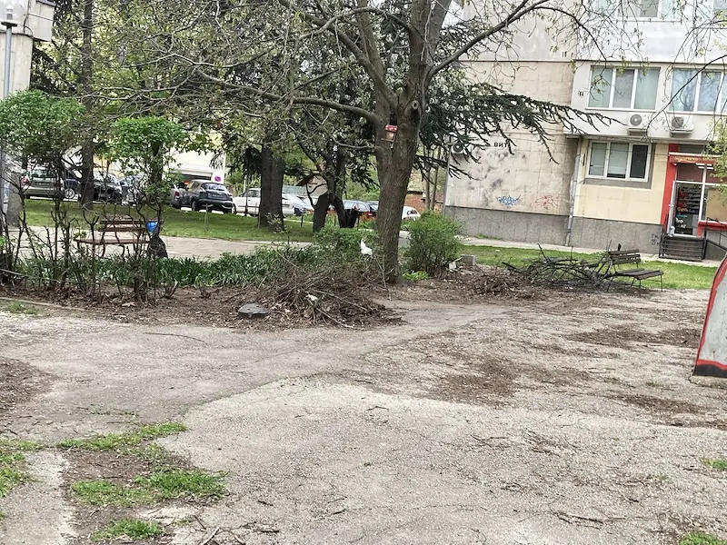 Към момента растителната маса стои натрупана пред жилищната сграда, като не само създава визуално неудобство, но и крие потенциална опасност за преминаващите пешеходци и играещите в района деца. Гражданите настояват местната администрация и отговорните комунални фирми спешно да изпратят екипи, които да натоварят и извозят събраните материали преди отново да се разпилеят или да предизвикат инцидент.
