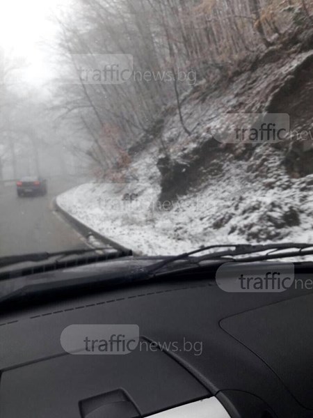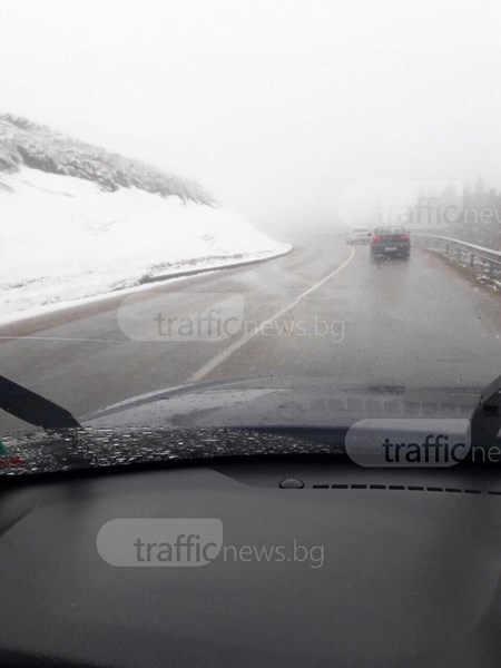 На близо 150 километра от Пловдив зимата се завърна с нова бяла покривка и с градуси около нулата. Пътната настилка е чиста и движението се извършва нормално.
