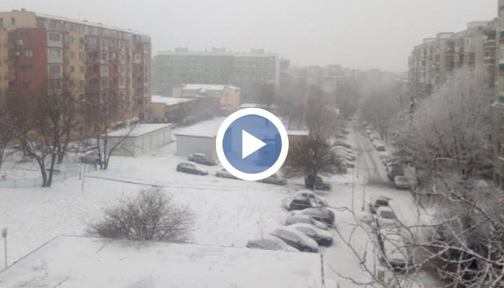 Образувана е снежна покривка над града, която се увеличава, тъй като снеговалежът продължава.