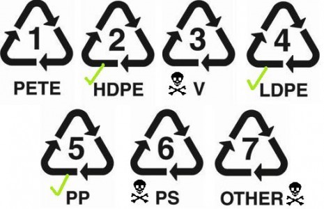 Със сигурност, пластмасите, които е добре да избягваме са тези с номера 3(PVC), 6(PS) и 7(PC).