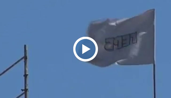 Партийно знаме се появи на покрива на един от блоковете в Хасково, които се санират от държавата.