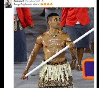 Знаменосецът на олимпийския отбор на островното кралство Тонга се превърна в истинска интернет сензация след откриването на Игрите в Рио, предава Нова телевизия.