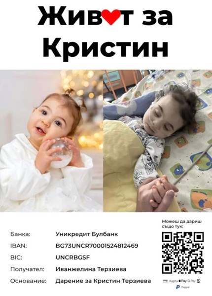 1-годишната Кристин Терзиева се нуждае от средства за лечение. Единственият шанс тя да живее е трансплантация на ново сърчице.