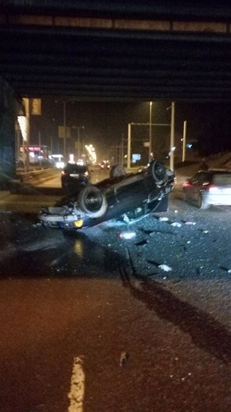БМВ се е обърнало по таван след инцидент на булевард "Христо Ботев" в Русе.