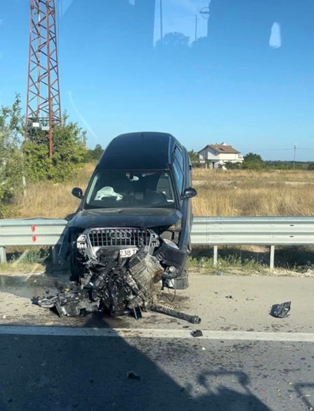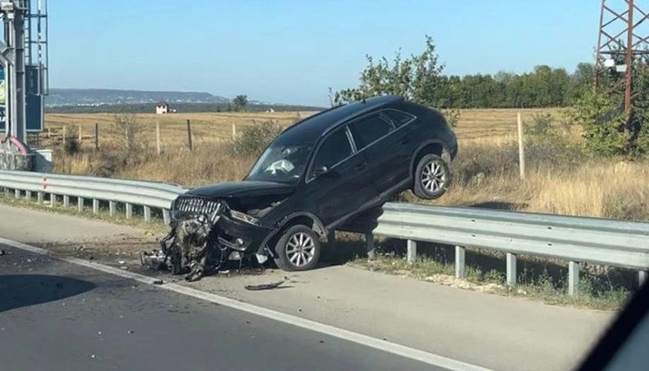 Според разпространени в социалните мрежи снимки, черен джип с марка "Audi" се е качил върху мантинелата след силен удар, а двигателят е изхвърчал през предницата на автомобила.