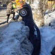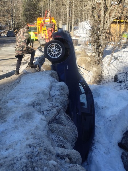 БМВ увисна вертикално и се заклещи между камъните