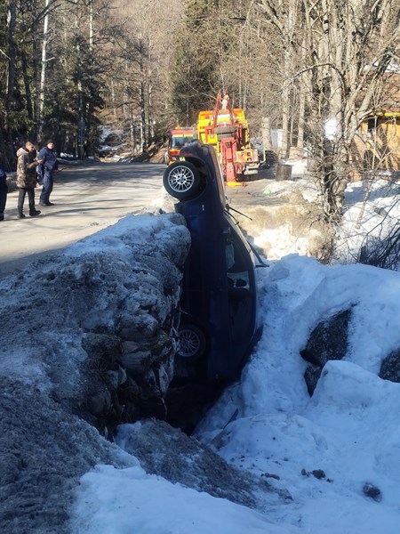 Зрелищна катастрофа беше регистрирана в района на местността "Златните мостове" по маршрута на градска линия 66. По информация на очевидци в социалната мрежа Фейсбук, лек автомобил е паднал от моста и се е заклещил между камъните в местността.
