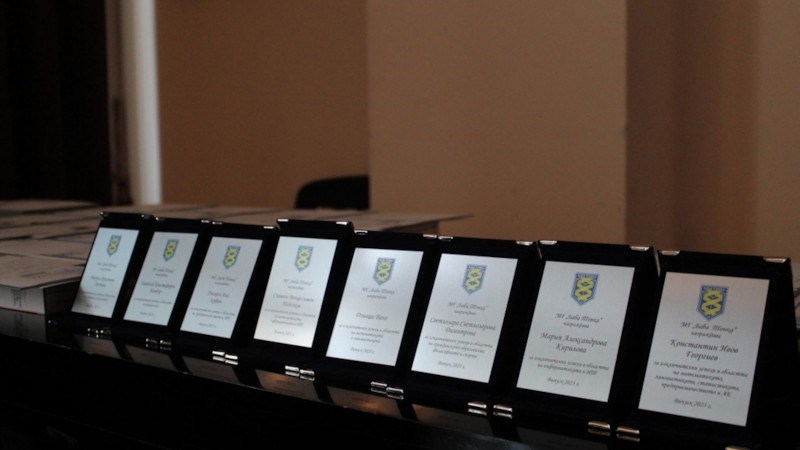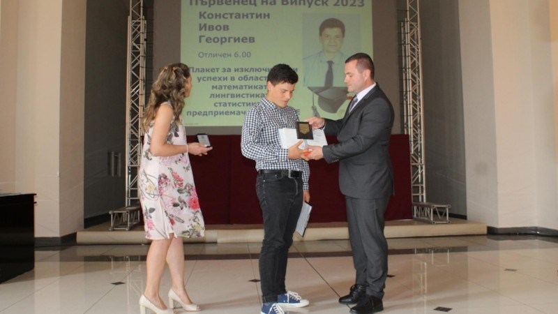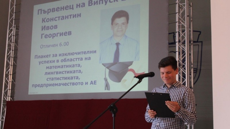 С тези думи се обърна към завършващите кметът на Русе Пенчо Милков. Той връчи отличието на тазгодишния първенец на випуска Константин Георгиев. Отличникът получи и плакет за изключителни успехи в областта на математиката, лингвистиката, статистиката, предприемачеството и английския език. Той изрази своята признателност към учителите и съучениците си, и сподели разбирането си за успеха - важно е да си заобиколен от правилните хора, които ти помагат по пътя нагоре.