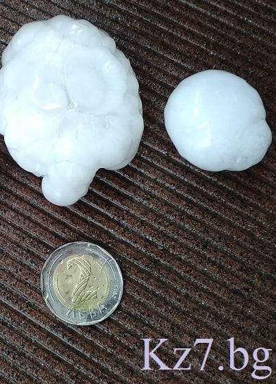 Ледените топчета падаха в продължение на близо 15 минути. Има щети по автомобили и сгради, все още не е ясно какви са щетите по насажденията в региона, съобщи Kz7.bg