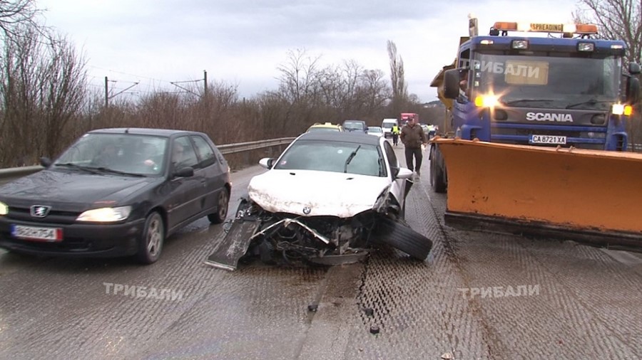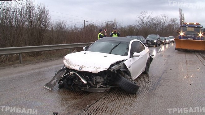 Инцидентът е станал към обяд, малко след като в района заваля дъжд. Шофьор на лек автомобил "BMW "се движел по мокрия участък с превишена скорост. Автомобилът се подхлъзнал, ударил се първо в страничната мантинела и впоследствие се натресъл в микробус. По чудо водачите и на двата автомобила не са пострадали, предаде ТРИБАЛИ.