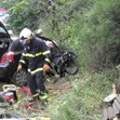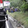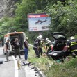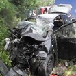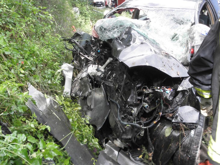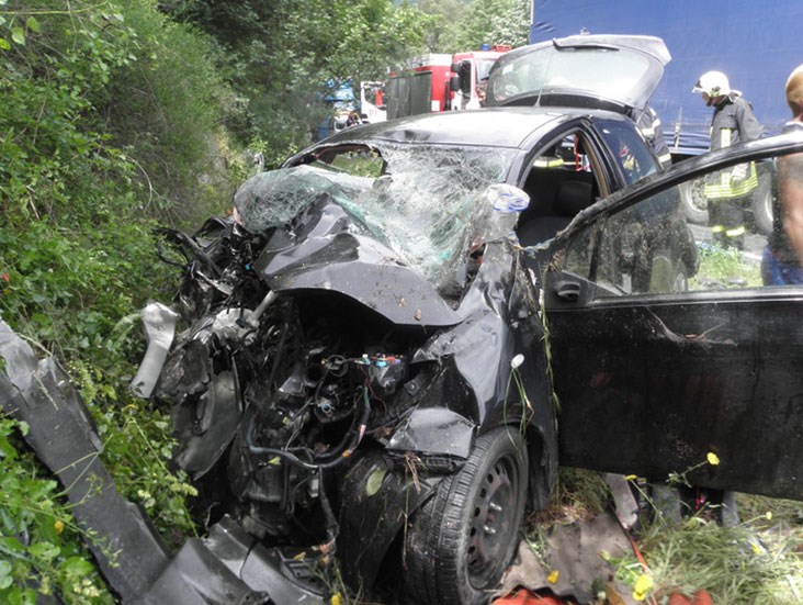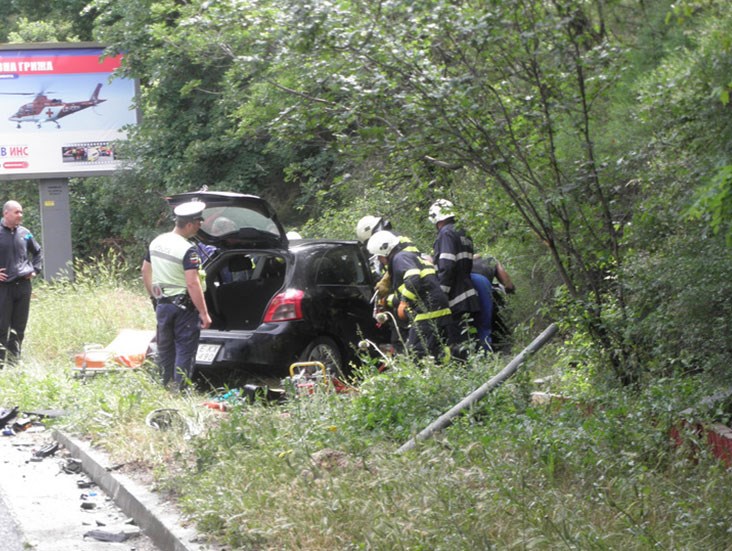 След удара лекият автомобил изхвърчал в канавката и се забил челно в скалите.