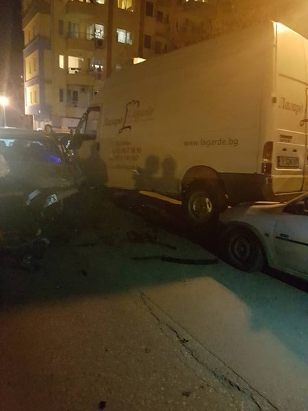 За това съобщават очевидци във Фейсбук, които публикуваха кадри от мястото на инцидента. По асфалта се вижда протекло гориво. Засега няма официална информация по случая, но свидетели на инцидента разказват, че пиян шофьор влетял със страшна скорост, ударил микробуса, а след това и останалите коли, пише Блиц.