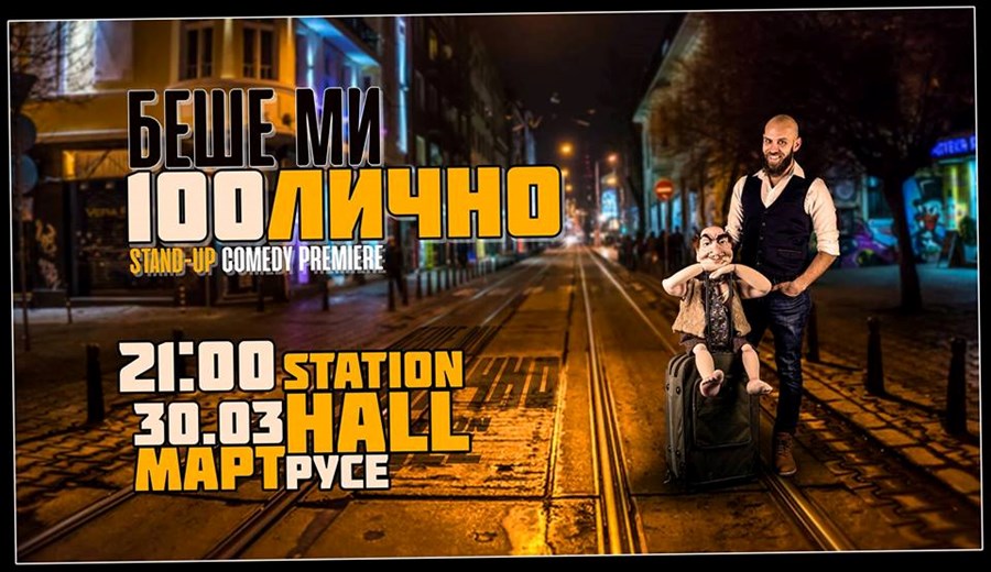 Димитър Иванов идва в Русе, за да ни развесели с авторския си Стендъп Комеди Спешъл „Беше ми 100ЛИЧНО“. Пристига заедно със съвсем небезизвестния Бай Тъньо - мъпет персонаж, ръководен от Капитана, чрез който той ни показва вентрологичните си умения. На пръв поглед Бай Тъньо прилича много на кукла, но след шоуто ще бъдете абсолютно убедени, че е жив и здрав, както и с безпощадно заседнала в миналото душа... и разбирания.